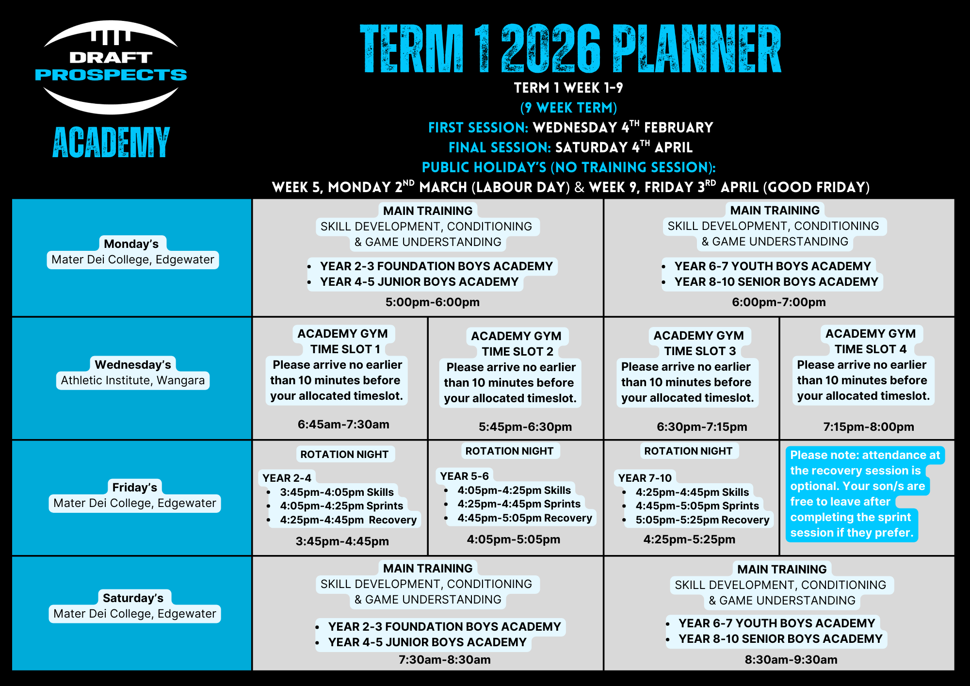 Here is the schedule for Term 1 2026!